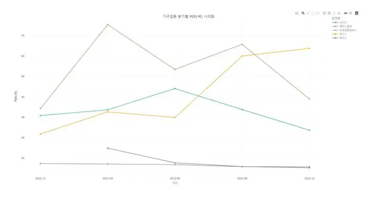 Corporate Financial Data Analysis: Compared and analyzed various financial indicators such as sales, net profit margins, and PER of different companies in the furniture industry to identify differences between stocks.